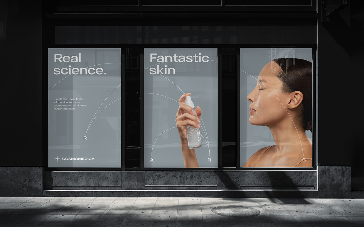 Название Cosmomedica может трактоваться двояко: как Cosmetic + Medicine или как Cosmos + Medicine. Оба прочтения точно передают суть бренда.