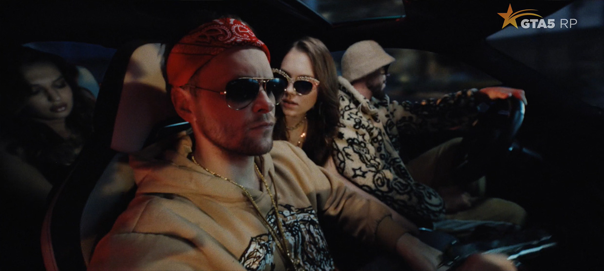 Визуальный стиль балансирует на грани провокации и digital-эстетики, передавая драйв GTA 5 RP через динамичный монтаж, хаотичную энергетику и символику игрового мира.