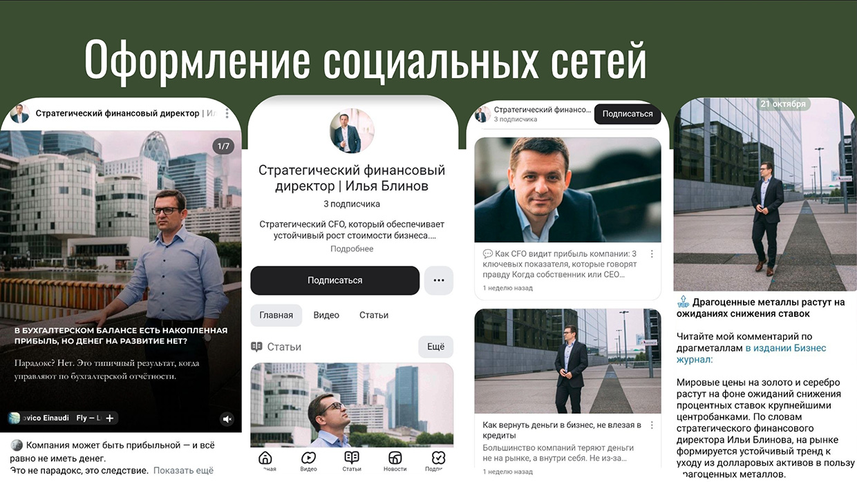 Эти фотографии стали основным визуальным активом, который работает 24/7 на формирование восприятия Ильи как привлекательного эксперта в своей области.