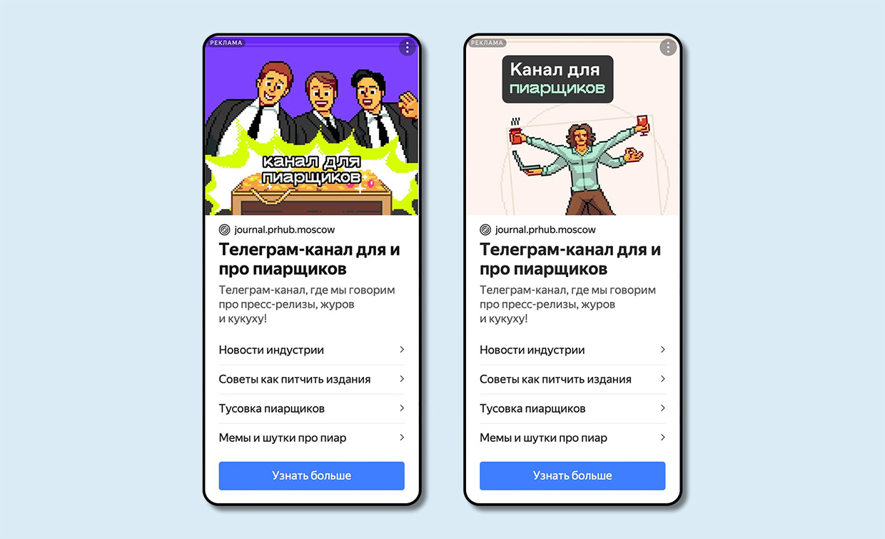 Для платного промо были задействованы посевы и кампании в Яндекс.Директ и Telegram Ads. Чтобы промо работало эффективнее, специалисты отказались от типовых креативов и сосредоточились на цепляющем и виральном.