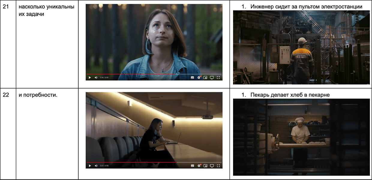 AVA studio показали в роликах будни 16 человек на их реальных рабочих местах. Это был настоящий вызов, потому что процесс усложняли ограниченное время и не адаптируемые для съёмки локации. Но на всех местах специалисты быстро сориентировались: выстроили сопутствующий рисунок и экспозицию для каждого героя, чтобы максимально точно передать его значимость.