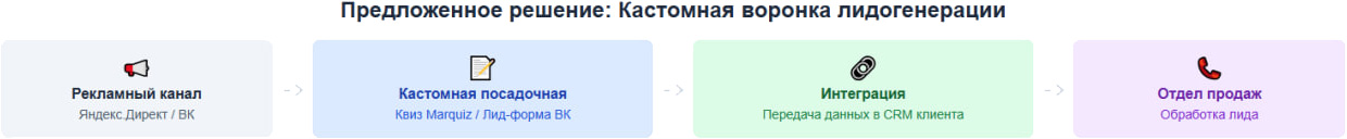 Схема кастомной воронки, которая позволила обойти неконверсионный сайт: