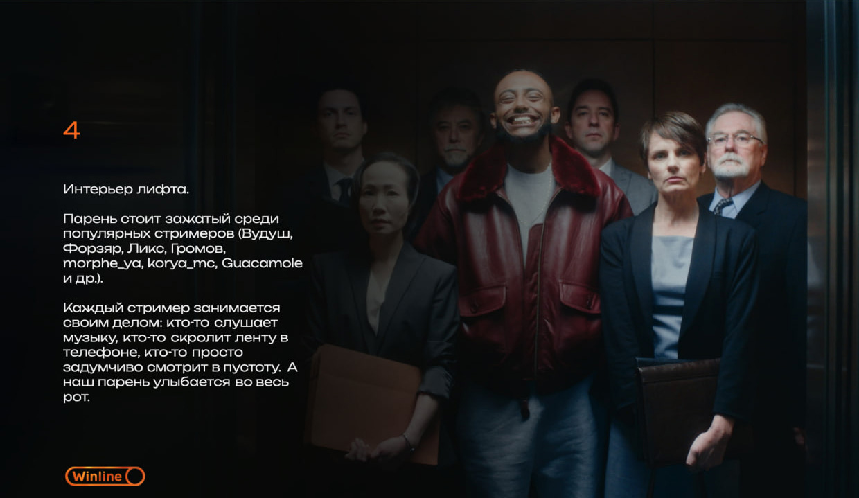 Получился рекламный ролик, где каждый кадр дышит геймерской культурой — от «пасхалок» в виде переименованных постеров (Winline Duty вместо Call of Duty) до бесшовных переходов между реальностью и игровым миром.