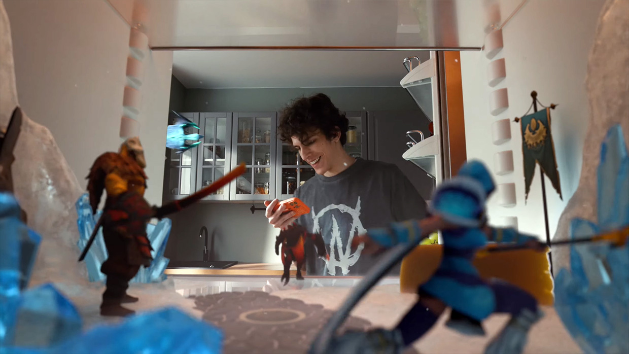 Главный герой живет в мире, где встреча с персонажами из Dota 2 и Counter-Strike стала частью повседневности — наглядное воплощение того, как бренд преображает обычную реальность в нечто экстраординарное.