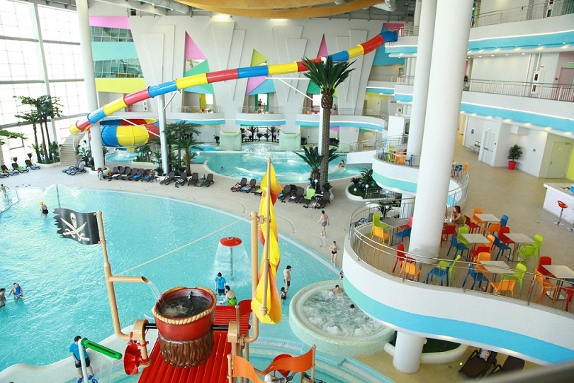 Многофункциональный комплекс включает в себя аквапарк, велнес-центр, SPA-центр, банный комплекс и боулинг, бизнес-центр, а также кафе, рестораны, бары и магазины. Он расположен на Юго-западе столицы, в непосредственной близости ко въезду со МКАД или в семи минутах ходьбы от станции метро «Ясенево». Общая площадь четырех трехэтажных корпусов - 55 тысяч кв. метров.