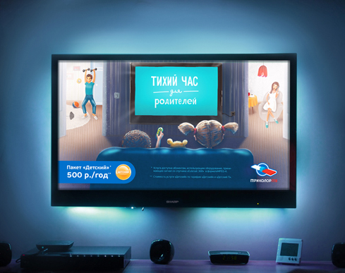 Отсюда родилась концепция для пакета телеканалов «Детский», наглядно демонстрирующая преимущество, которое получат родители, если воспользуются этой услугой: гораздо больше свободного времени для решения своих дел, в то время как их дети заняты просмотром увлекательных передач.