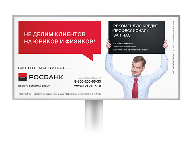 Агентство Vitamin Group разработало для Росбанка рекламную кампанию «Не делим клиентов на юриков и физиков!» для продвижения банковских услуг предпринимателям.