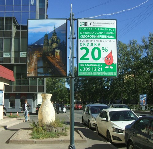 В Санкт-Петербурге с приходом осени все больше медицинских учреждений размещают рекламные сообщения на малых форматах наружной рекламы, а именно — на информационно-коммуникационных указателях.