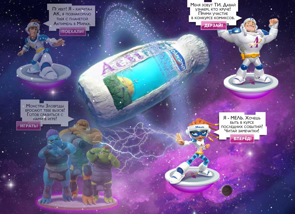 Вступая в ряды АктиГероев, пользователи проекта проходят виртуальные испытания вместе с бренд персонажами, что позволяет не только познакомить детей с продуктом, но и вовлечь их в длительную коммуникацию.
