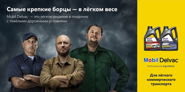 Рекламная кампания «Самые крепкие борцы — в лёгком весе» поддерживает запуск новой линейки масел Mobil Delvac, предназначенной для лёгкого коммерческого транспорта.