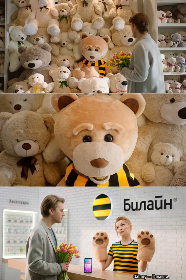 Новая кампания для «Билайн» и Samsung призвана спасти девушек от плюшевых медвежат с помощью года безлимитного интернета и Samsung Galaxy.