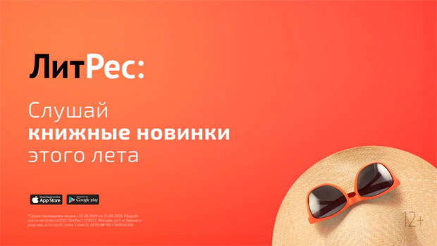 Рекламная кампания посвящена летней акции ЛитРес, в рамках которой пользователь может приобрести электронную или аудиокнигу со скидкой 50% по промокоду LETO.