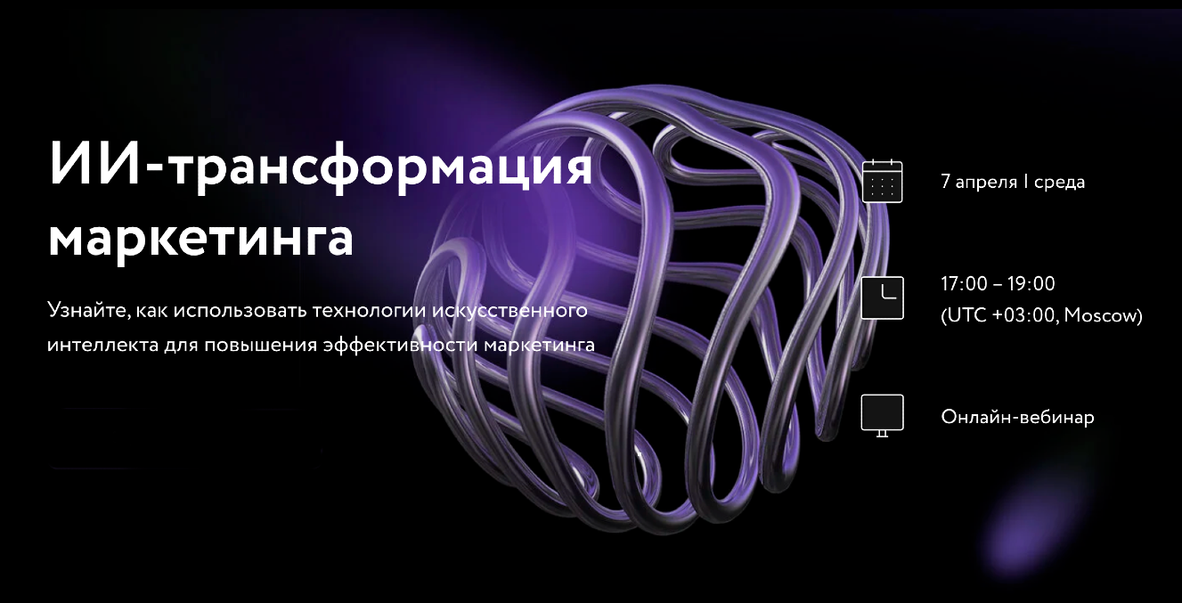 Вебинар будет полезен для маркетологов, digital-маркетологов, менеджеров по инновациям и всем, кто давно хотел разобраться и внедрить технологии искусственного интеллекта для решения бизнес-задач.