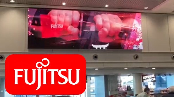 Японская компания Fujitsu анонсировала новую линейку ноутбуков. Размещением рекламы на видеостене в зале ожидания вылетов занимается агентство Avia Adv.