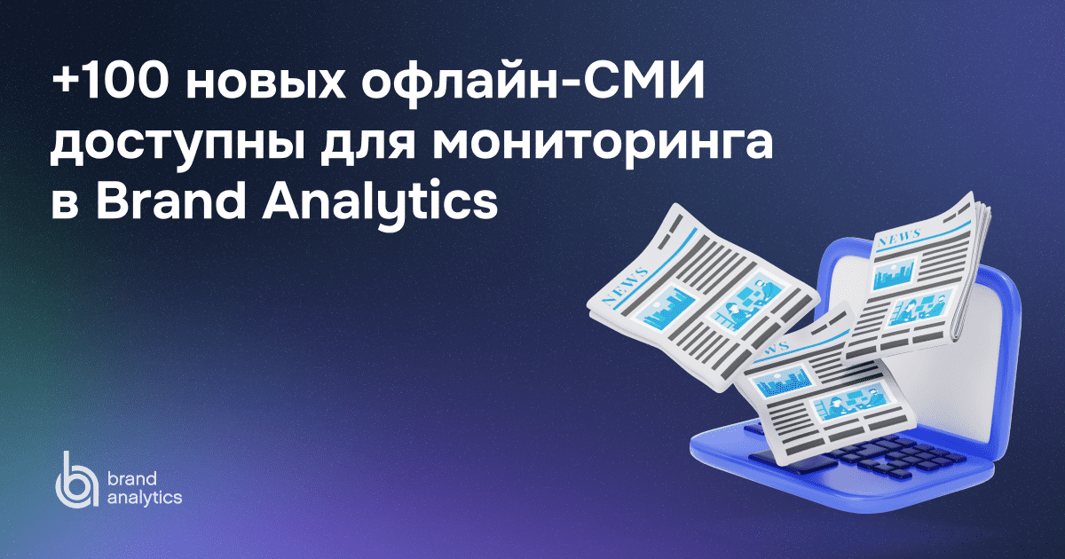 В системе Brand Analytics стали доступны для мониторинга в темах типа СМИ более 100 новых офлайн-источников, среди которых:- 79 российских региональных газет и журналов, например, Комсомольская правда — Калуга и Деловой квартал — Екатеринбург;