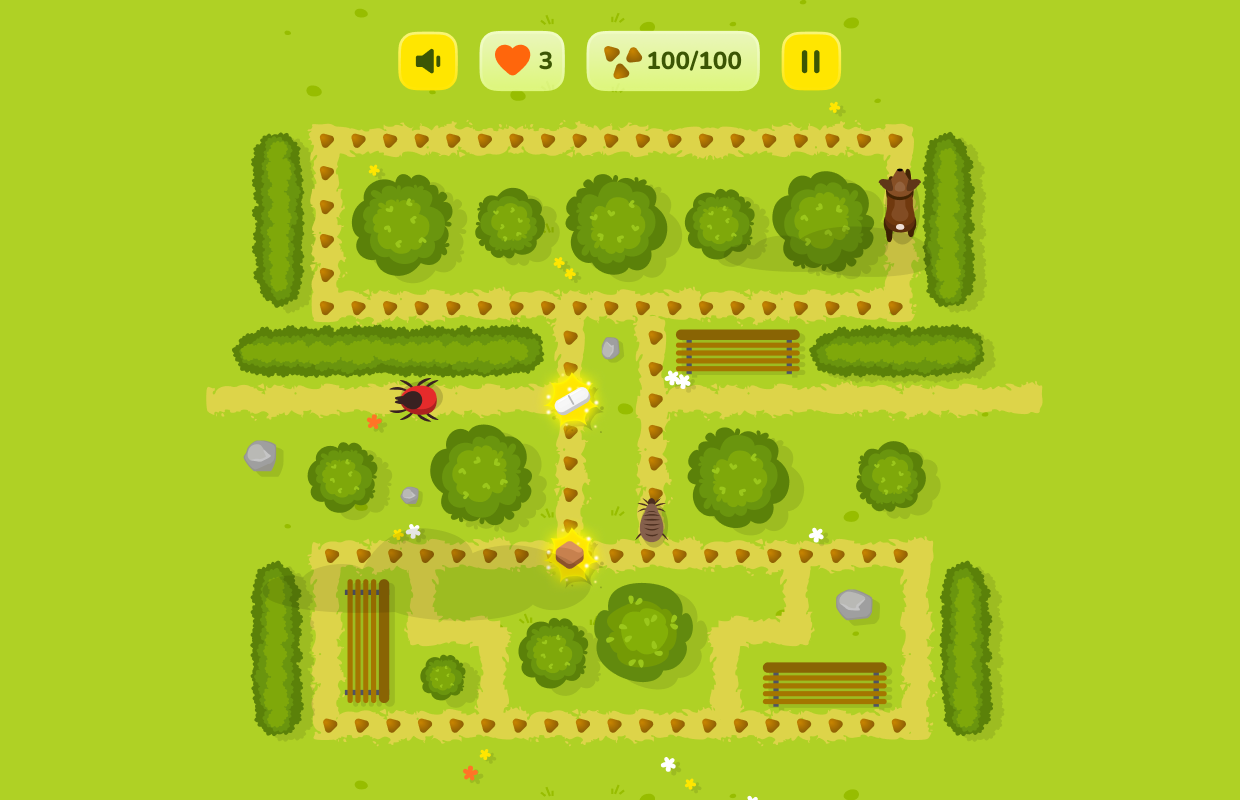В лабиринте, напоминающем самый обычный парк, питомца поджидают вредные насекомые, от которых нужно защищаться. Сделать это можно, собирая бустеры, каждый из которых — реальное средство защиты питомцев. Такие, как специальные ошейники, таблетки или капли.