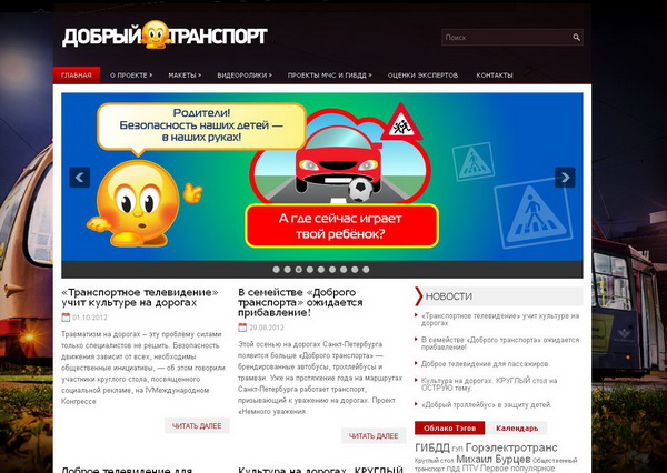 На сайте добрыйтранспорт.рф размещены не только данные о проекте, здесь можно увидеть макеты оклейки транспорта, стикеры нового поколения, а так же примеры видеороликов социальной рекламы.