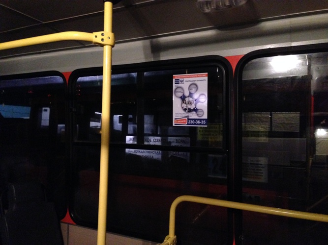 В качестве медиаканала была выбрана транзитная реклама, так как кампания нацелена на широкую целевую аудиторию, а реклама на транспорте способна в полной мере удовлетворить это требование. В качестве рекламоносителей были задействованы бортовая и внутрисалонная реклама на автобусах средней вместимости. Адресная программа была подобрана таким образом, чтобы обеспечить охват города. Креатив разработан исполнителем.