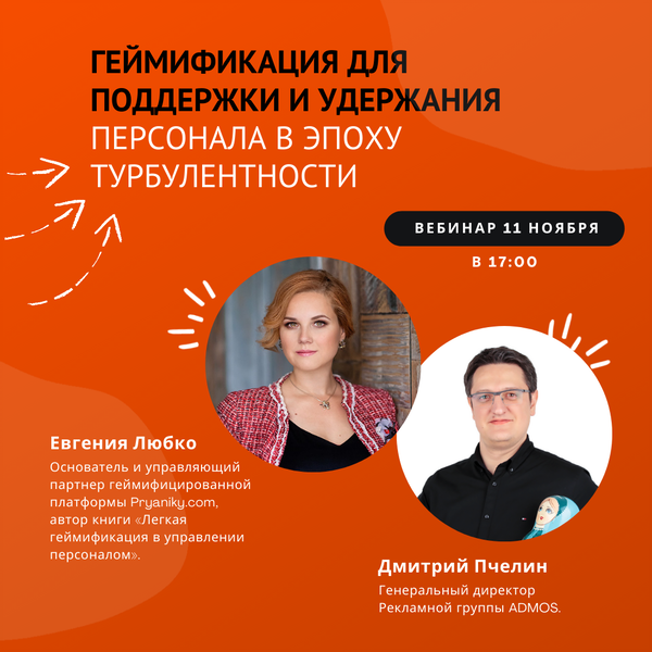 11 ноября в 17:00 состоится совместный вебинар от ADMOS и Pryaniky.com на тему «Геймификация для поддержки и удержания персонала в эпоху турбулентности».