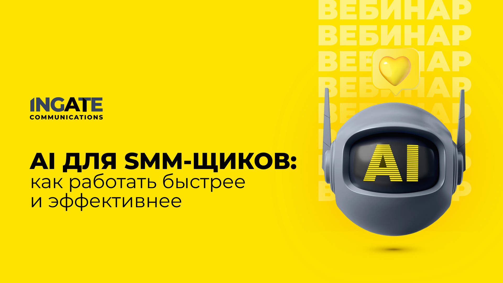 24 октября состоится бесплатный вебинар, на котором руководитель отдела предпродажной подготовки Ingate Communications Александра Гурова расскажет о том, как AI и ML меняют подходы к продвижению в социальных сетях.