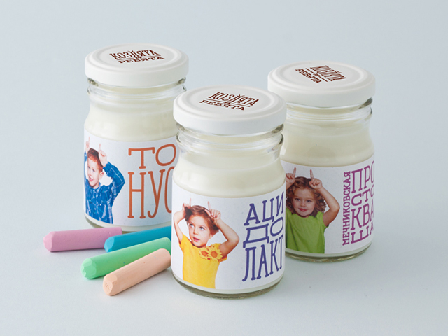 «Нам хотелось создать очень трогательную, немного ностальгическую упаковку, которая могла бы обратить на себя внимание покупателей. «Козлята и ребята» рекомендованы для самых маленьких, поэтому еще в начале работы мы постарались разобраться в восприятии молодых и ещё не очень опытных мам. В основе концепции — доброе воспоминание из детства, в котором мамы и бабушки показывают своим деткам козу, чтобы те не шалили. В нашей интерпретации нет взрослых, зато есть сами малыши, изображающие маленьких козлят на фронтальной этикетке», — рассказывают дизайнеры Science.