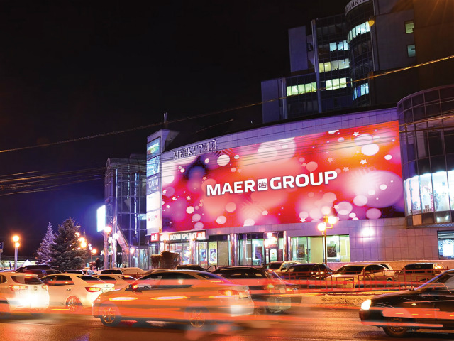 Maer Group — первый федеральный оператор имиджевой рекламы, специализирующийся на нестандартных проектах и крупноформатных цифровых носителях (медиафасадах, экранах, крышных конструкциях). Компания располагает собственными поверхностями в более чем 40 регионах России, в том числе 16-ю медиафасадами в Москве, Санкт-Петербурге, Екатеринбурге, Нижнем Новгороде, Челябинске, Сочи, Новосибирске, Волгограде и Самаре.