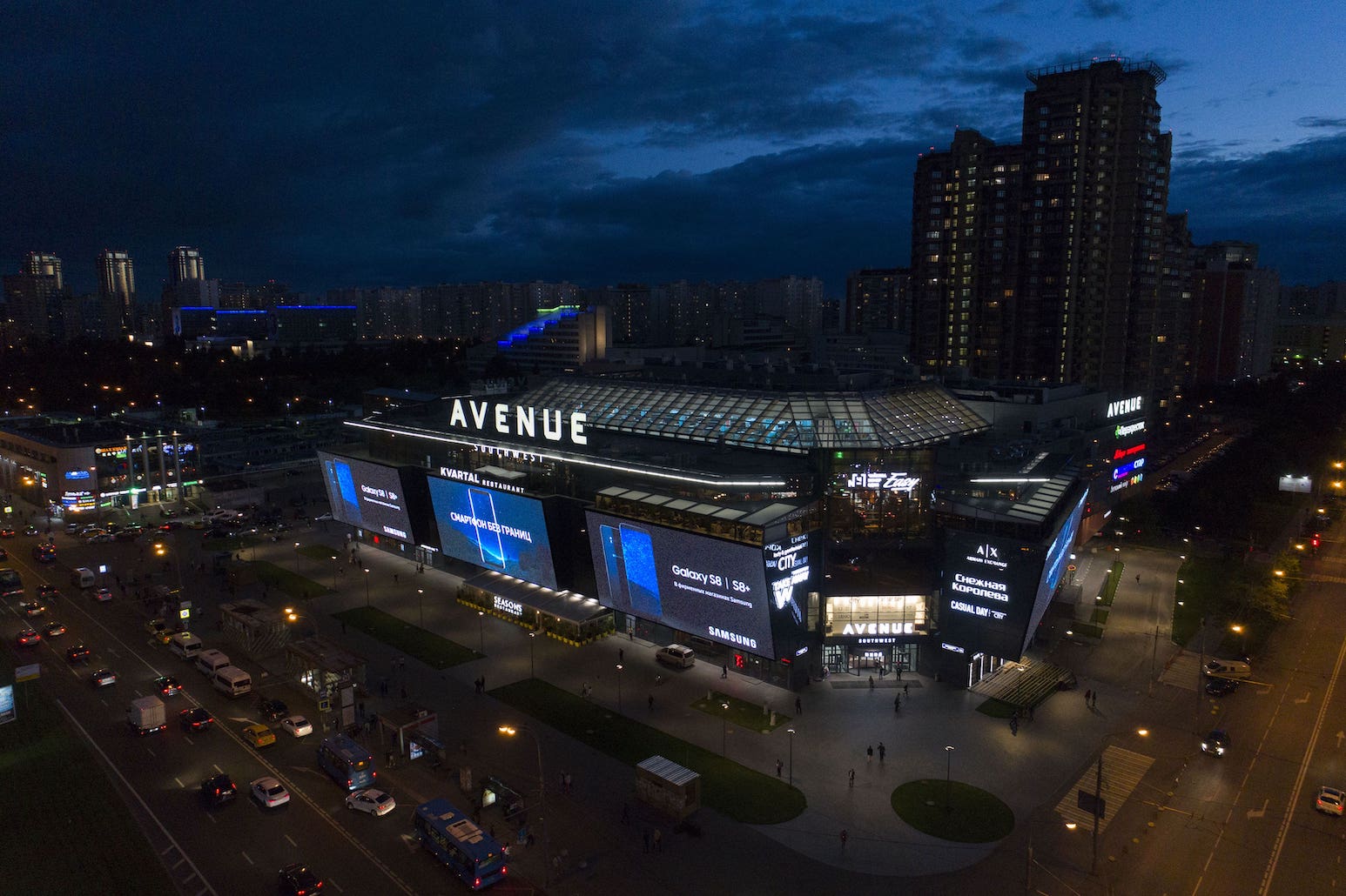 Медиафасад ТРЦ «Avenue» выходит на проспект Вернадского — крупнейшую городскую автомагистраль с интенсивным автомобильным трафиком