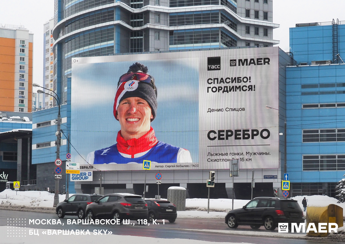 С началом зимней Олимпиады-2022 россияне увидели спортивных героев в беспрецедентном масштабе. Фотографии призеров и победителей зимних Игр-2022 ежедневно транслируются на крупноформатных рекламных экранах медиахолдинга MAER.