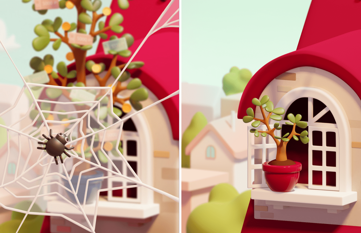 Команда Digital Lab создала пространство, пронизанное магией, безопасностью и детской наивностью — ведь весь сюжет немного напоминает сказку. Волшебные бобы, дерево, на котором растут монеты — с помощью дизайна мы объединили фантазию и игру. Все эти ощущения были переданы за счёт мягких объемных форм, напоминающих структурой пластилин. За магию игры отвечает и динамика: в процессе роста дерева, фон на заднем плане меняется, становясь все более нереальным. Всего фонов-локаций в игре четыре: земля, облака, космос и дальняя галактика.