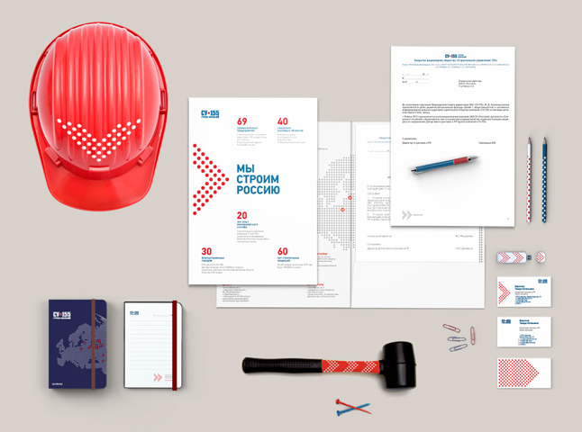 Базовым элементом единого фирменного стиля ГК «СУ-155» стала красная точка, занимающая центральное место в логотипе. Она символизирует лидерство группы компаний в отрасли, ее надежность и стабильность. Красная точка – это и кнопка «пуск», помогающая оперативно запустить жилищное строительство в любом регионе России, и символ того, что «СУ-155» является отраслевым лидером по объемам строительства, численности работников и множеству других важных показателей.