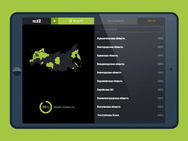 Процент обновленных салонов по каждому региону отображался на площадке в режиме реального времени. Таким образом сервис позволил сразу проконтролировать изменения.