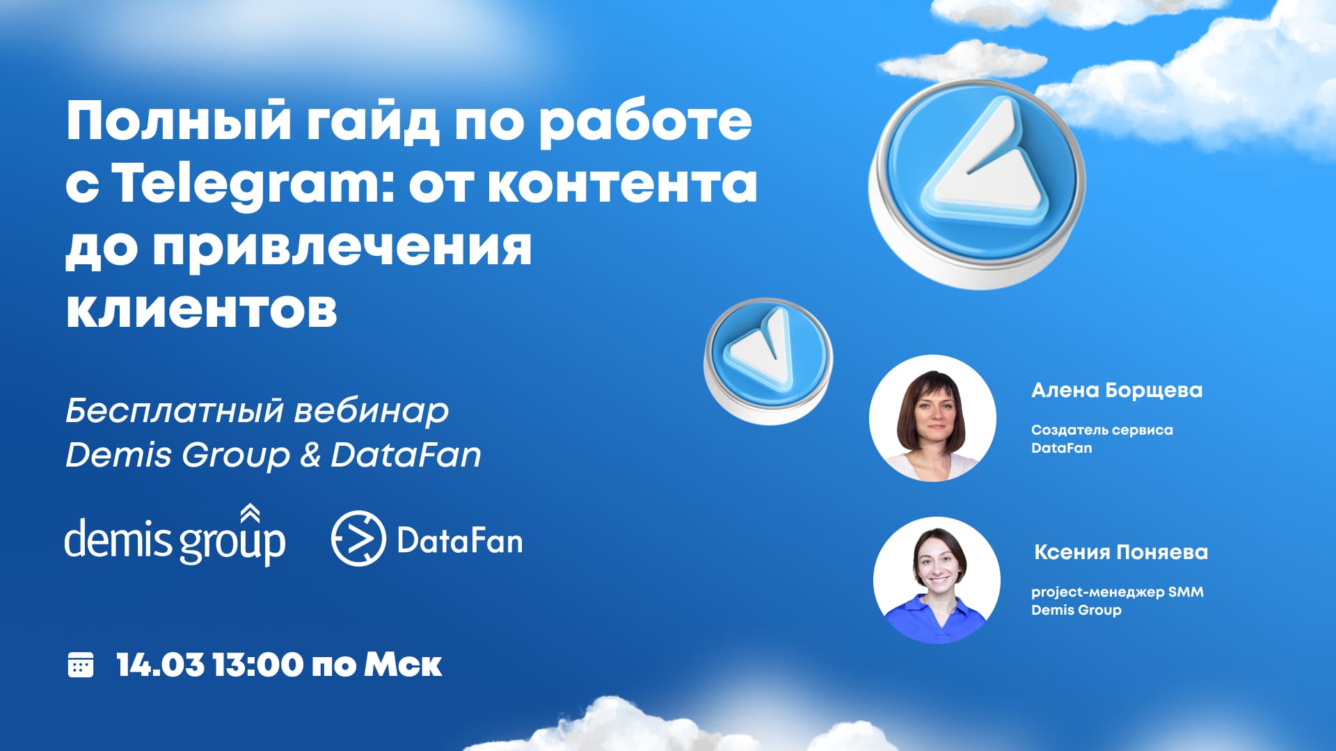 14 марта в 13:00 специалисты Demis Group совместно с DataFan проведут бесплатный вебинар, на котором разберут все тонкости работы с Telegram.