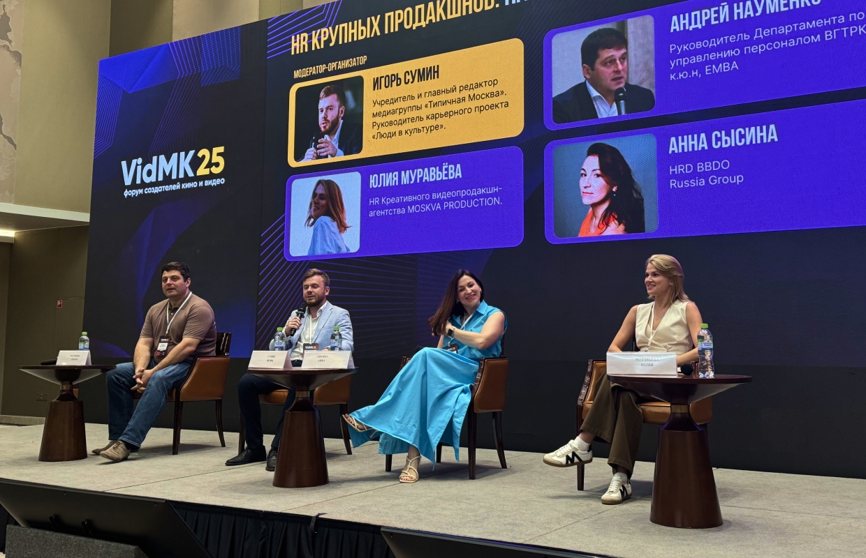 5 июля 2025 года в Москве состоялось важное событие для индустрии видеопродакшна — форум VidMK 2025. В рамках мероприятия прошла открытая дискуссия с участием HR крупных продакшнов. В частности, в дискуссии приняла участие Юлия Муравьева, HR-директор креативного видеопродакшн-агентства MOSKVA PRODUCTION.
