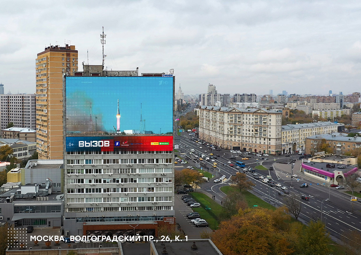 5 октября 2021 года граждане России впервые могли наблюдать за стартом космического корабля с космодрома Байконур, находясь на улицах своих городов. Кадры исторического запуска кинематографической миссии Роскосмоса и Первого канала на околоземную орбиту демонстрировались на медиафасадах — больших светодиодных экранах.