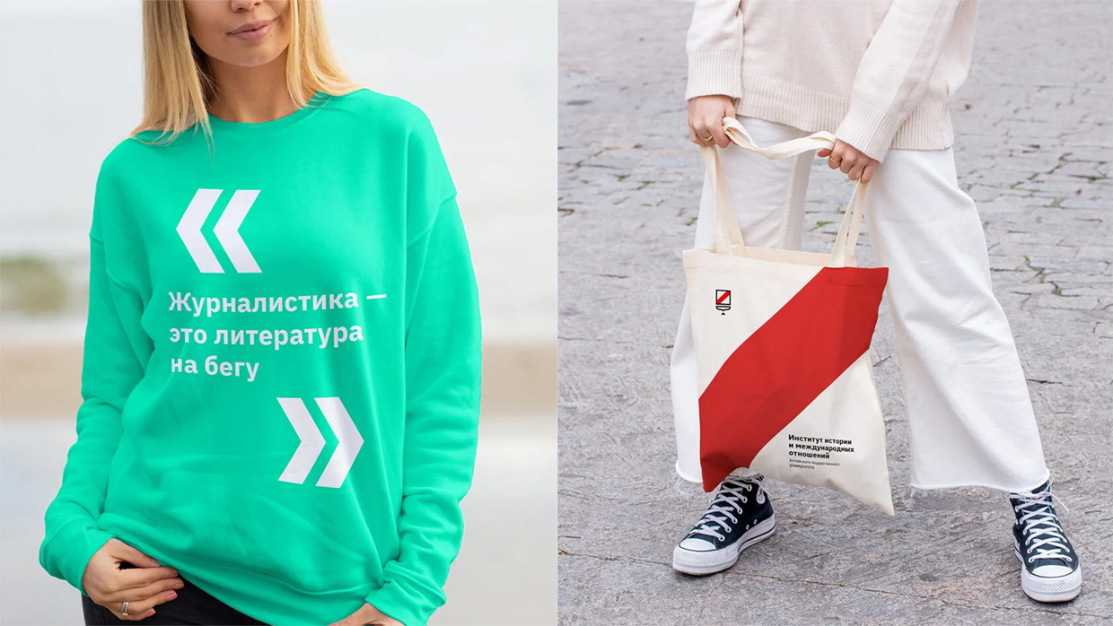 Также дизайнеры забрендировали мерч для студентов всех институтов — у каждого свой.
