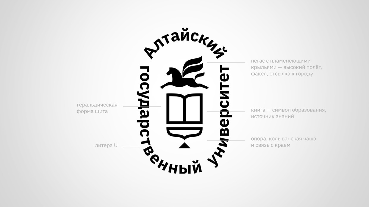 Пегас на логотипе «АлтГУ» символизирует знания и внутреннее развитие, а также указывает на непосредственную связь города, на гербе которого изображён конь, и единственного опорного вуза Алтайского края.