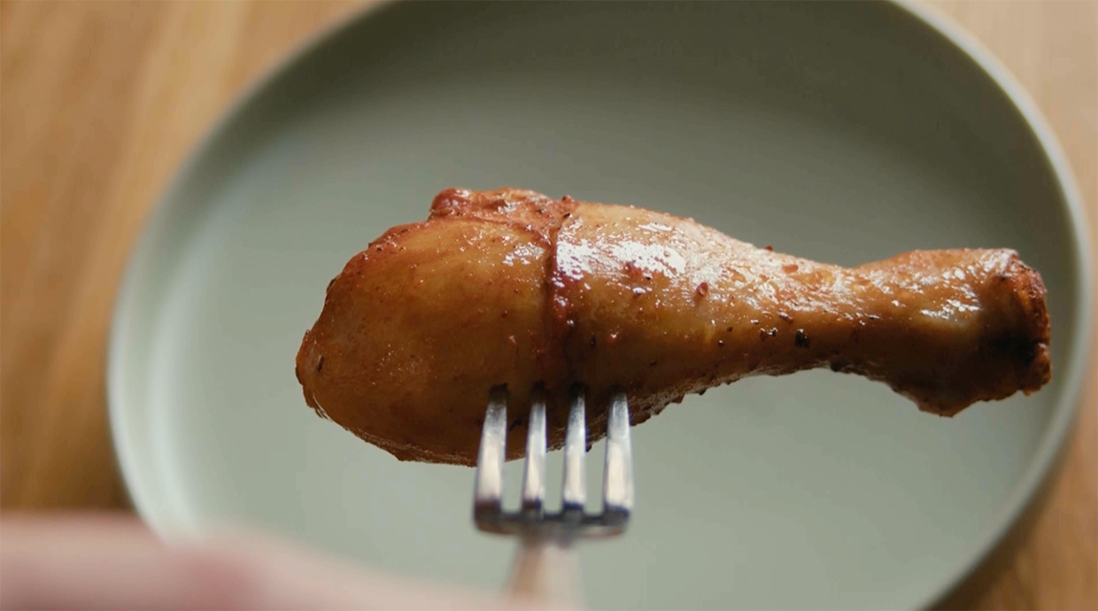 Для съёмки курицы команда использовала роборуку и снимала кадры на макрооптику — так в фуд-ролике появились красочные и аппетитные крупные планы. К созданию итоговой картинки были привлечены фуд-стилисты.