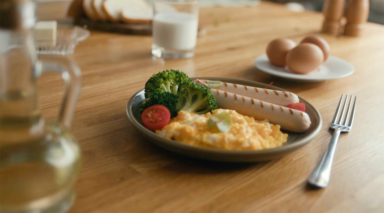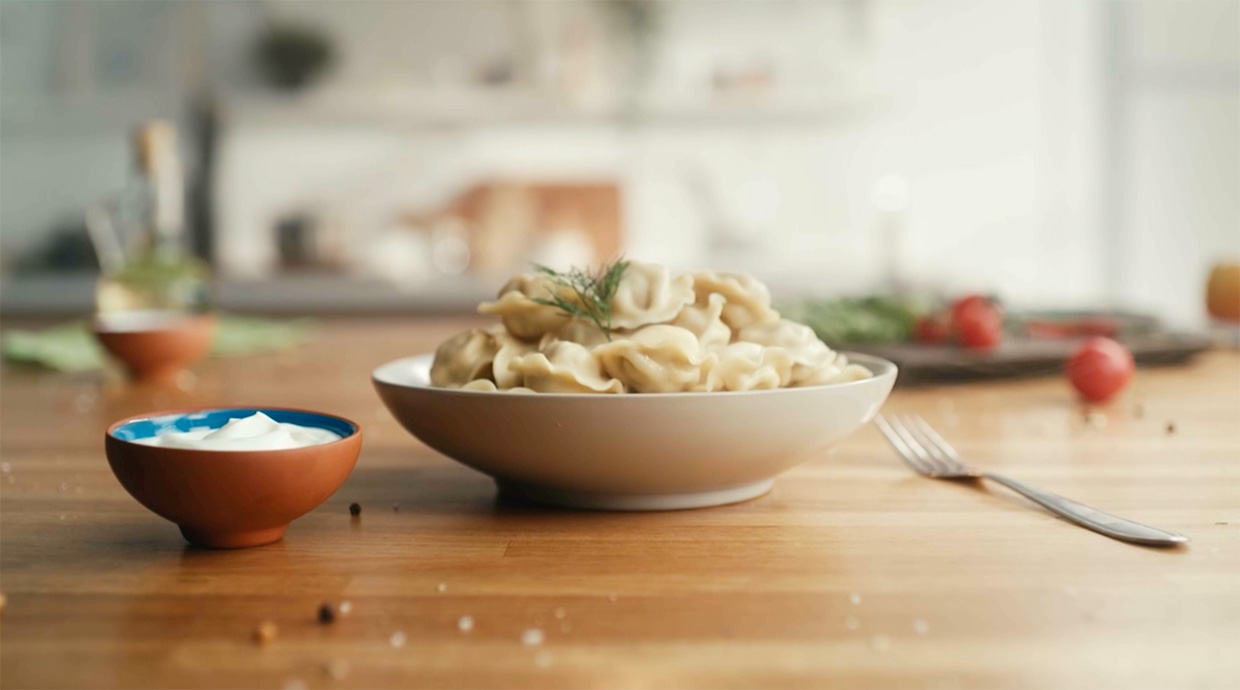 Съёмки проходили в интерьерах уютной кухни. Там специалисты агентства раскрыли магию быстрого приготовления сытных и всеми любимых блюд: сосисок, котлет, пельменей.