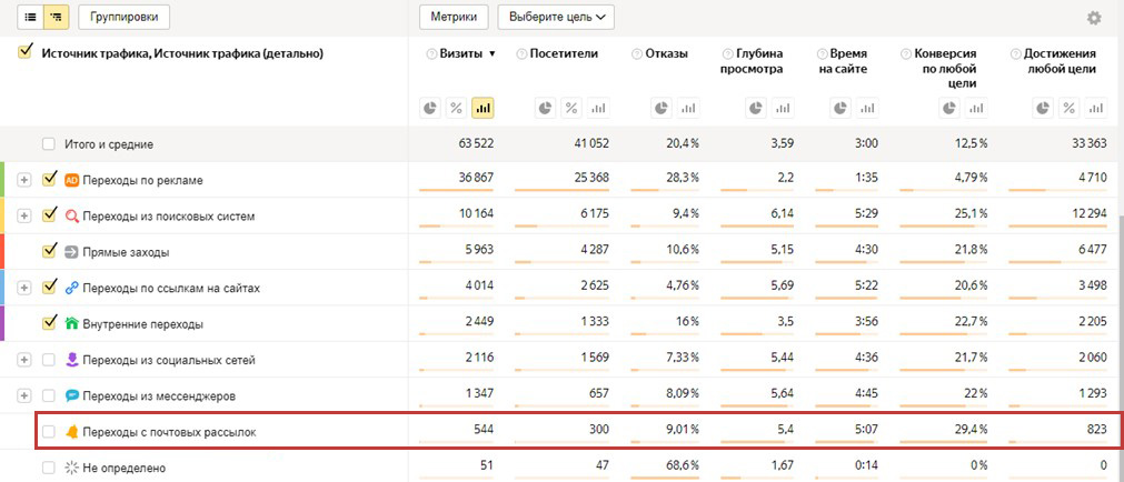 - 544 пользователя перешли обратно на сайт после получения писем.