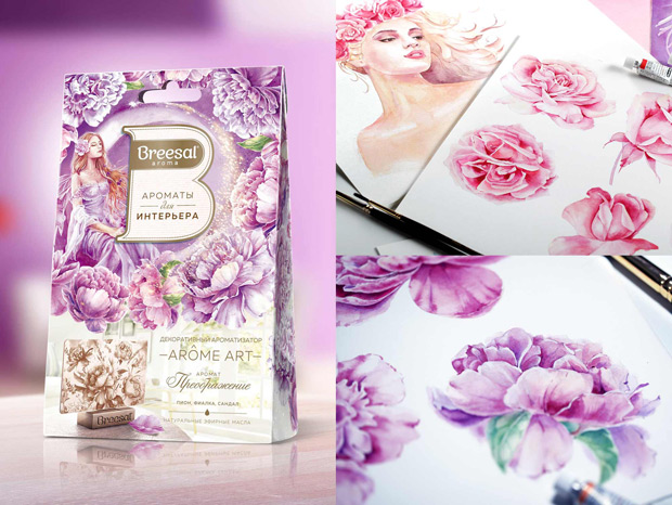 Новый дизайн Breesal выполнен в акварельной стилистике. Неуловимый, изящный, нежный, как легкое дуновение ветра, приносящего запах цветов, сочных ягод, свежих листьев, он очень гармонично и тонко передает роскошные ароматы Breesal, позволяя при этом выделиться на полке.