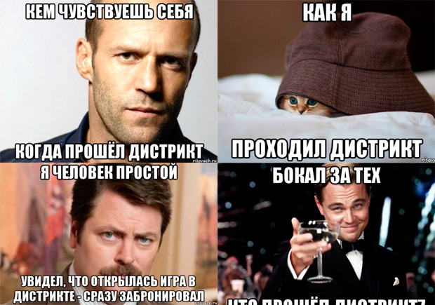 Для публикаций ВКонтакте придумали специальные мемы, отвечающие на вопросы: Что такое District7? Кто слышал? Где это? Как попасть? Когда открытие? Вы видели? Тоже хочу! Кто со мной? Забронировал игру, жду не дождусь, Это было круто!