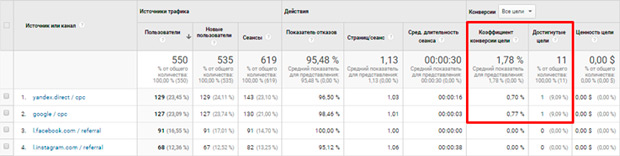 Показатели кампаний в декабре еще интереснее 11 конверсий, а коэффициент - 1.92%: