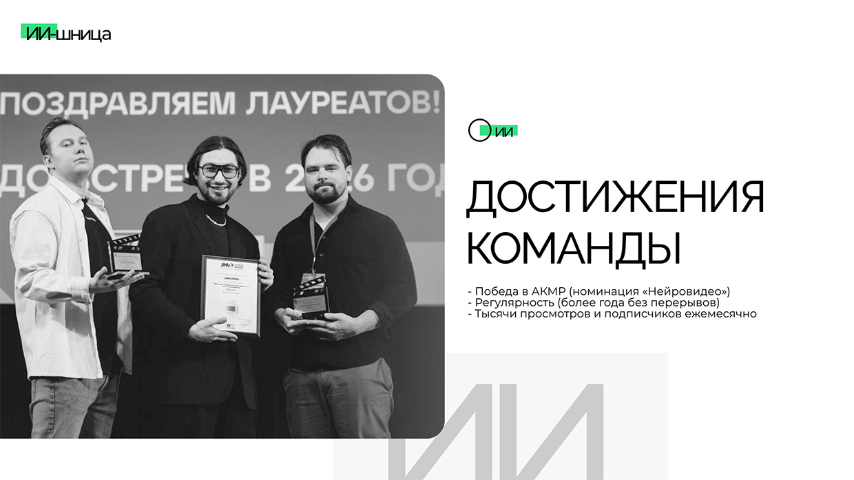 В 2025 году «ИИшница» завоевала главный приз на премии АКМР (Ассоциация директоров по коммуникациям и корпоративным медиа), став лучшим проектом в категории «Нейротехнологий в видеопродакшене».