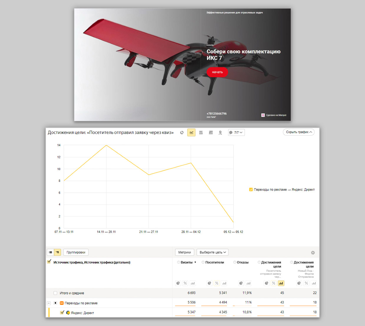 В данном случае Мастер Кампаний запускался для быстрого получения лидов — звонков и заявок.
