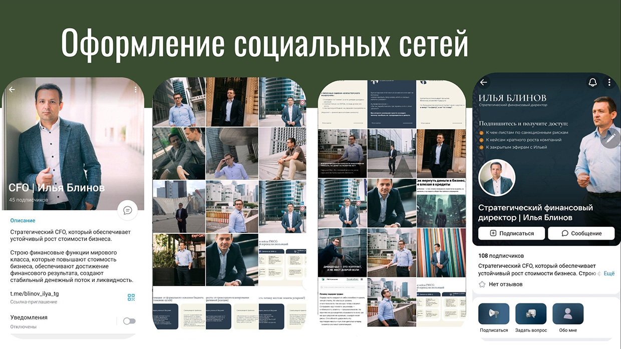 Эти фотографии стали основным визуальным активом, который работает 24/7 на формирование восприятия Ильи как привлекательного эксперта в своей области.