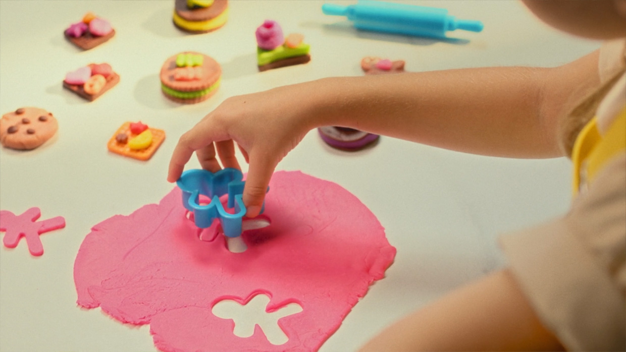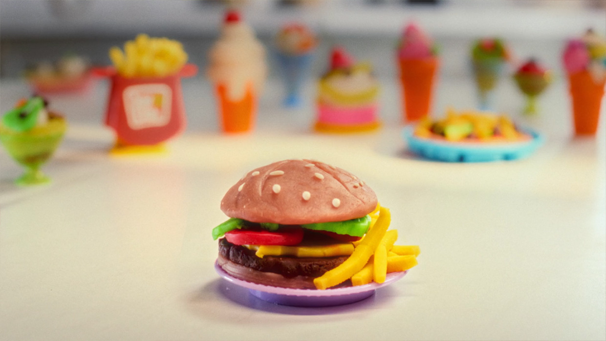 Задачей агентства Netclip стала разработка 10-секундного ролика для кухонных наборов Joy Doh — пицца, бургер, мороженое, печенье и так далее.