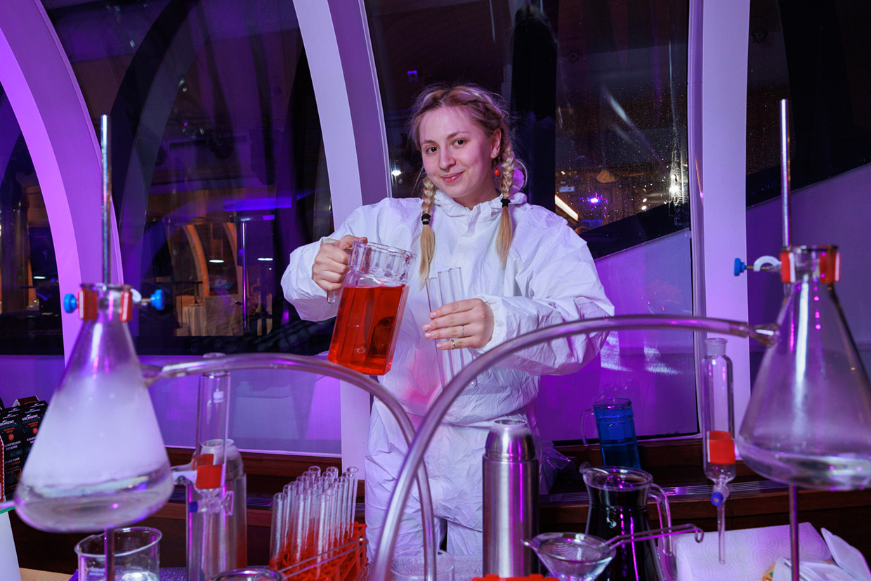 Welcome-часть и сама программа включали молекулярное казино и молекулярный бар, где гости могли попробовать вкусные коктейли с интригующими названиями «Марсианский вихрь», «Ракетное топливо», «Хвост кометы».