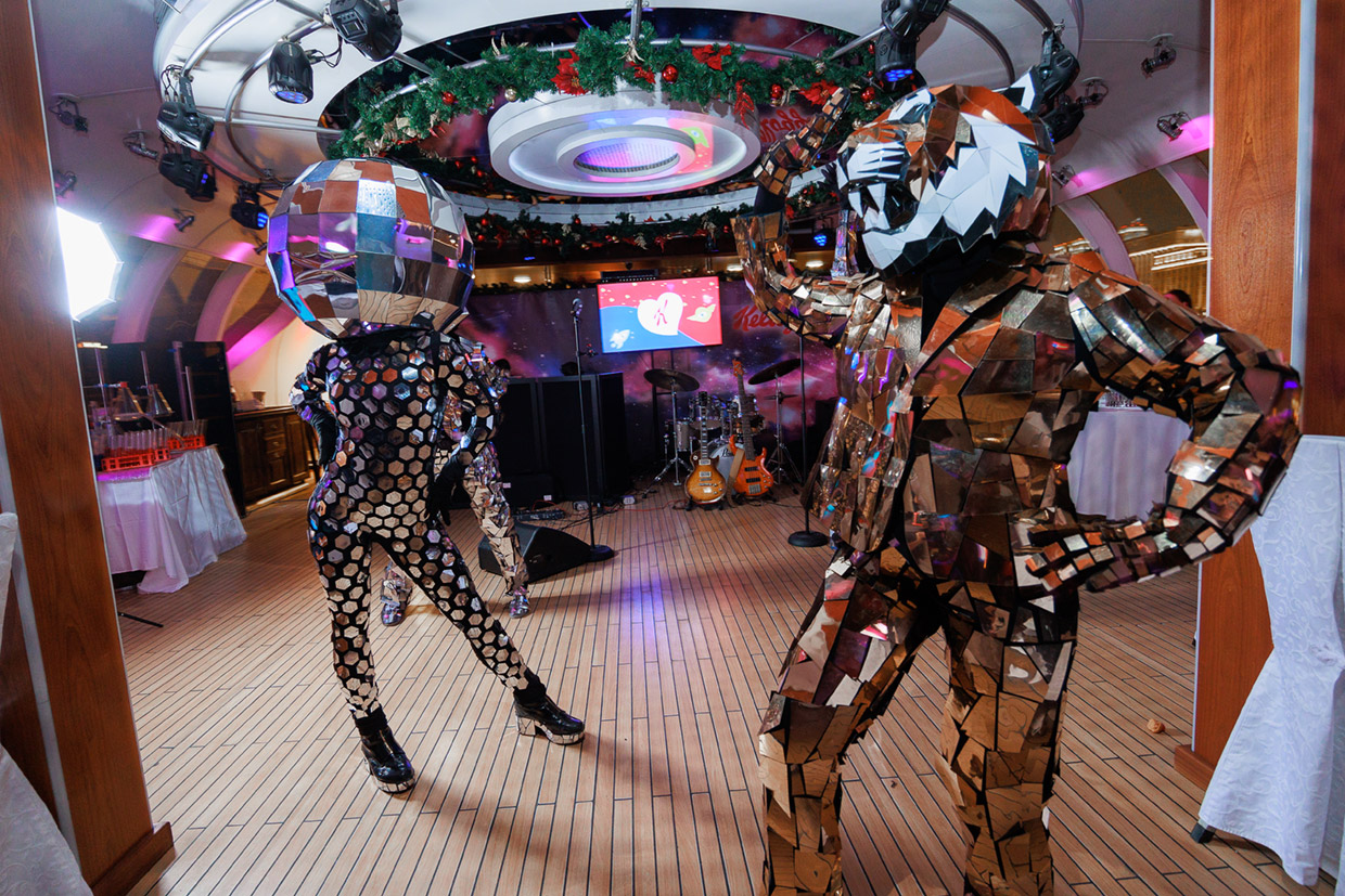 Гвоздем программы было шоу зеркальных зайцев. Артисты закружили в зажигательном танце всех гостей корабля.