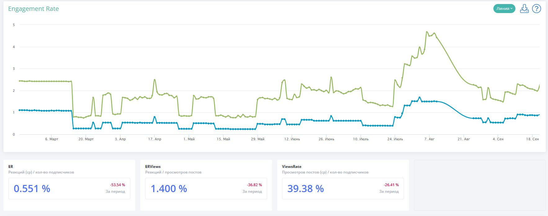 На графике видно, что после проведенных изменений в контент-программе (обозначено красной вертикальной линией) активность аудитории существенно возросла. Такая динамика показывает, что аудитория стала активнее взаимодействовать с контентом, и это подтверждает успешность новой стратегии.