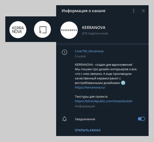 - «Очень долго искали агентство на ведение TG канала KERRANOVA для дизайнеров и архитекторов. Обращались к фрилансером, но они не надежные. Очень классно, что у ребят большая экспертиза. Над ведением телеграм-канала работали SMM-менеджер и дизайнер. С ребятами очень легко найти общий язык! Мы совместно выдвигали различные гипотезы и тестировали их. Все бизнес задачи были достигнуты, очень приятно сотрудничать с Иваном и Михаилом!»